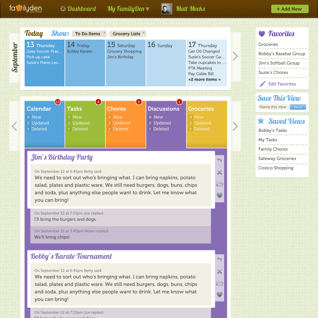 Busy families need to be able communicate effectively around scheduling, chores, groceries and more. Having one central location for managing all this information, as well as tracking items like school lunch payments and even coordinating with extended family members, coaches, etc. would be ideal for today's family.