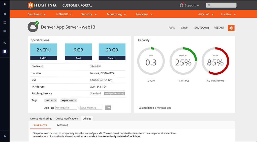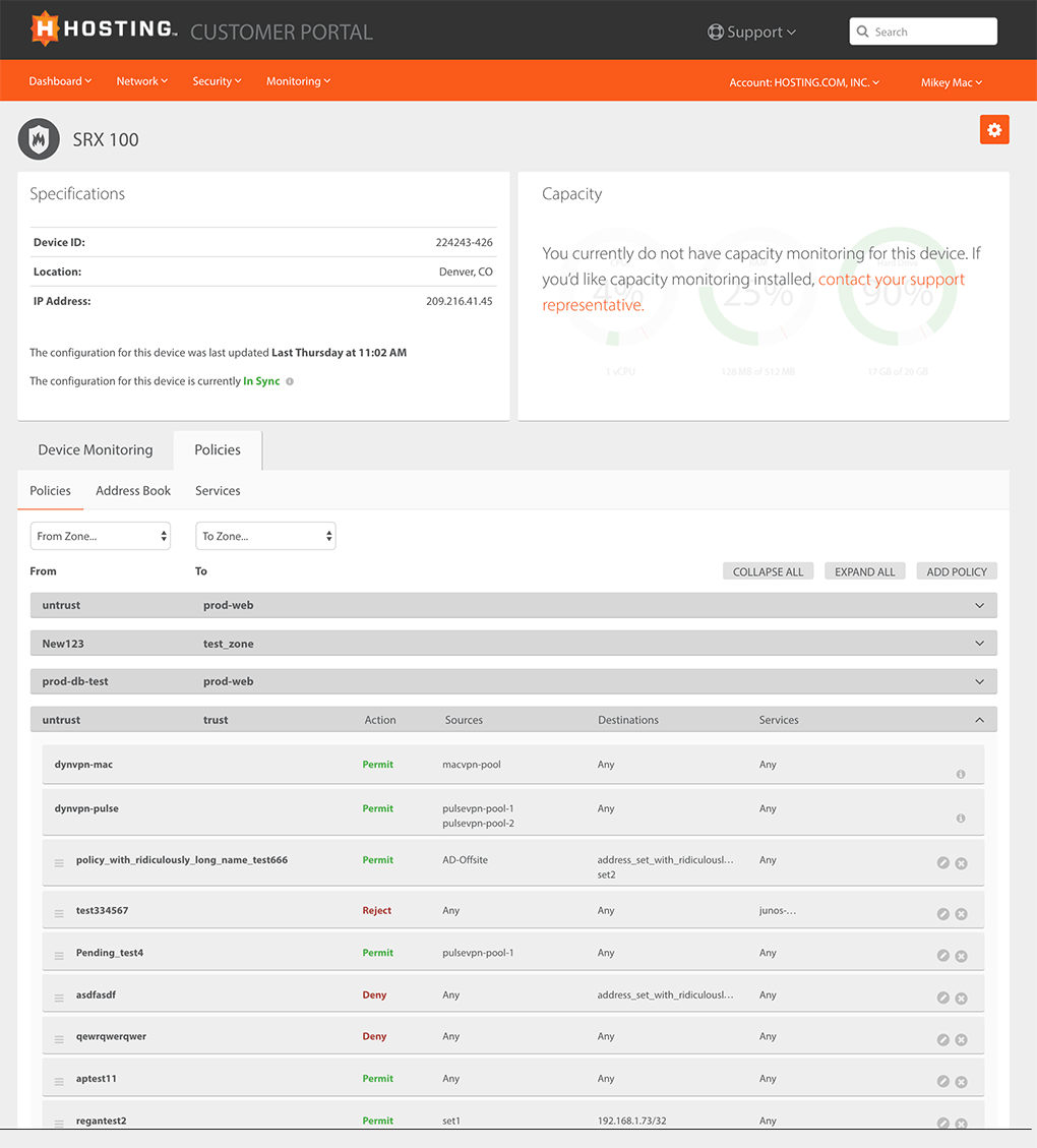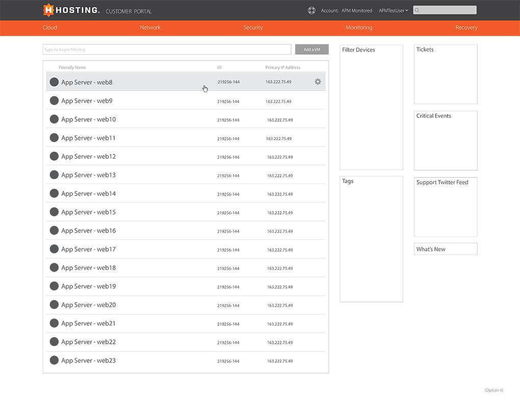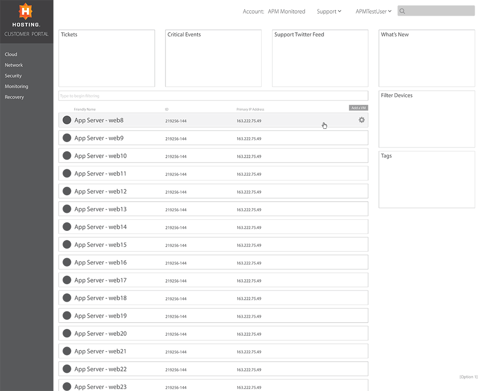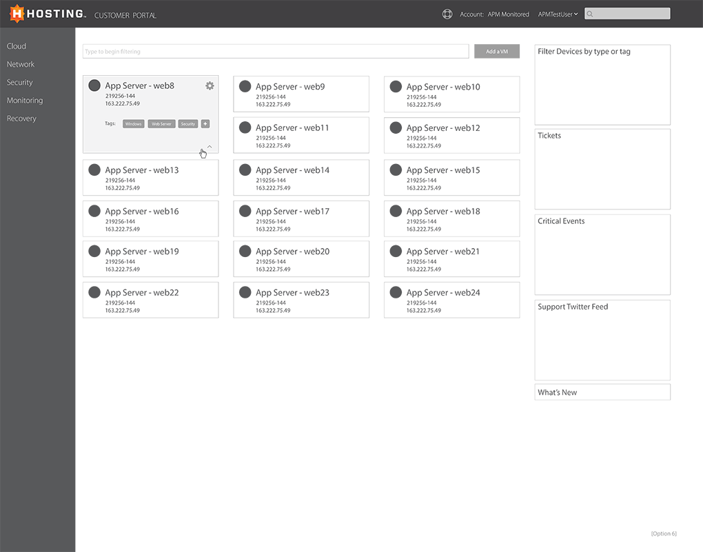 As the UX Lead for HOSTING, I am tasked with leading and designing the UX/UI for a complete redesign and code rewrite of our customer portal comprised of complex applications. With the processes for monitoring and managing different types of devices having broad, diverse needs, one of the biggest challenges is to create consistency across many applications to have them look, feel and behave as one application.