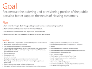 Using the outcome of the workshop, I collated the results into statements and put them into a poster to increase visibility and share with stakeholders, internal customers and team members. This vision now guides our UX practice and helps keep us on track to create engaging, understandable and useful experiences.